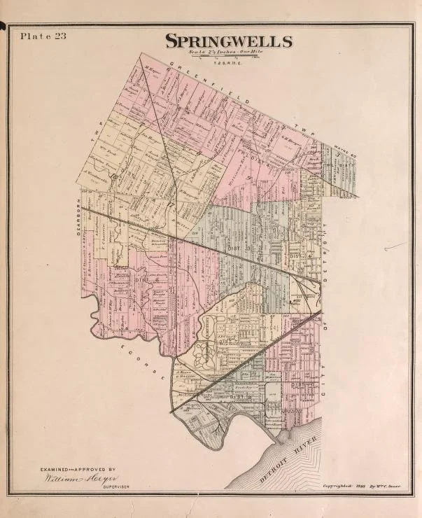 This map shows the township of Springwells in 1891, including Historic Fort Wayne. (Library of Congress).